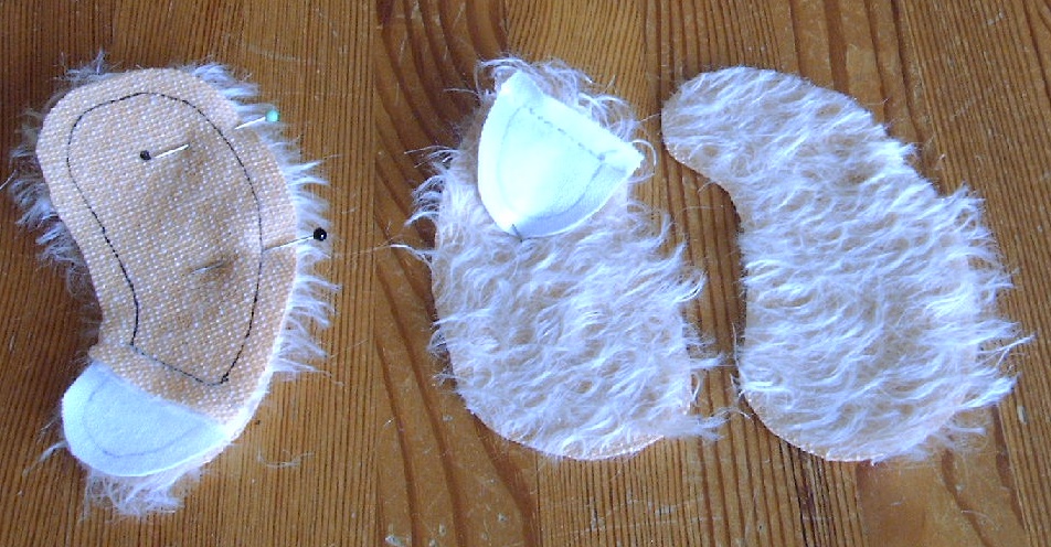 berücksichtigen. Die Ohrteile je 1 x aus Mohair und 1 x aus Pfotenstoff, die